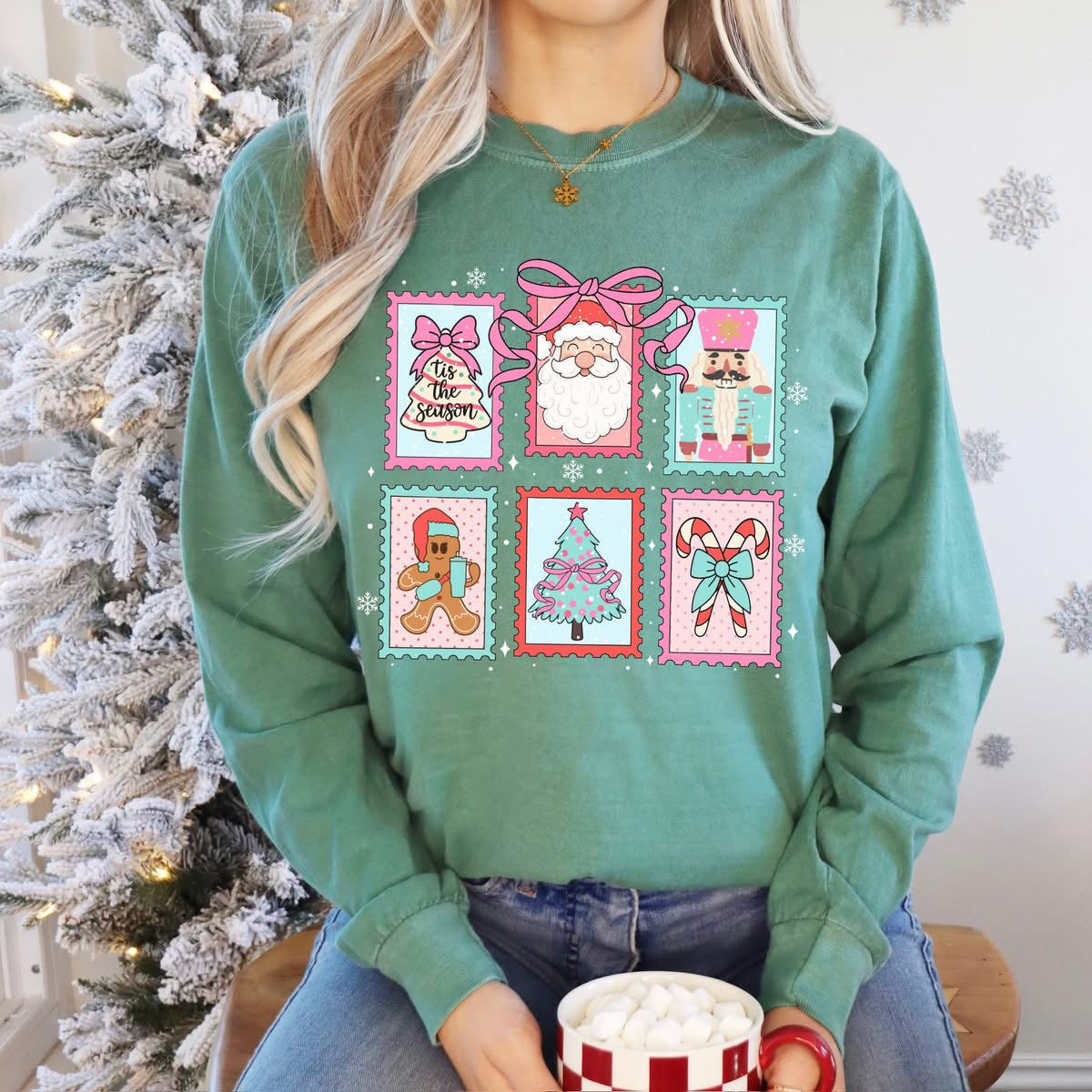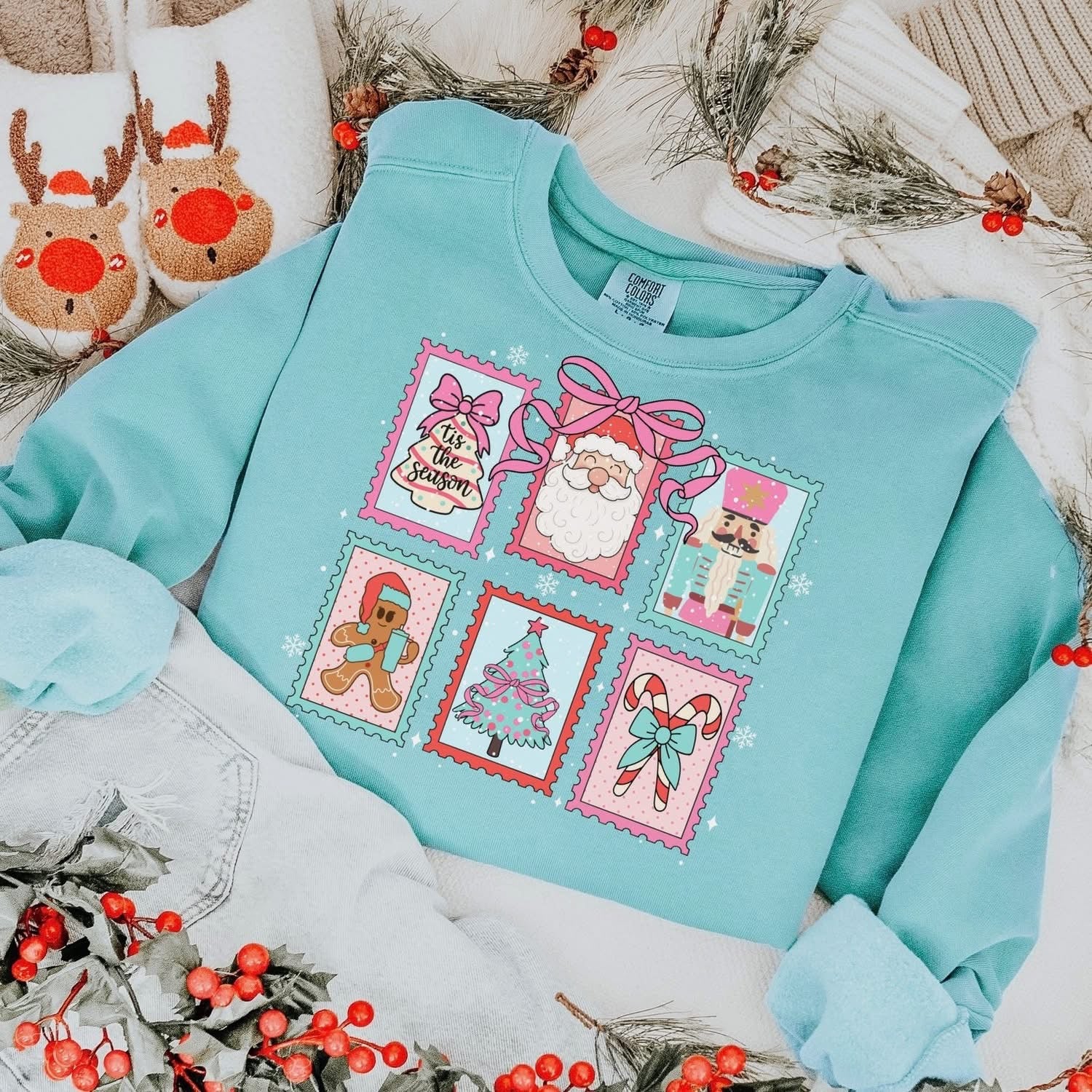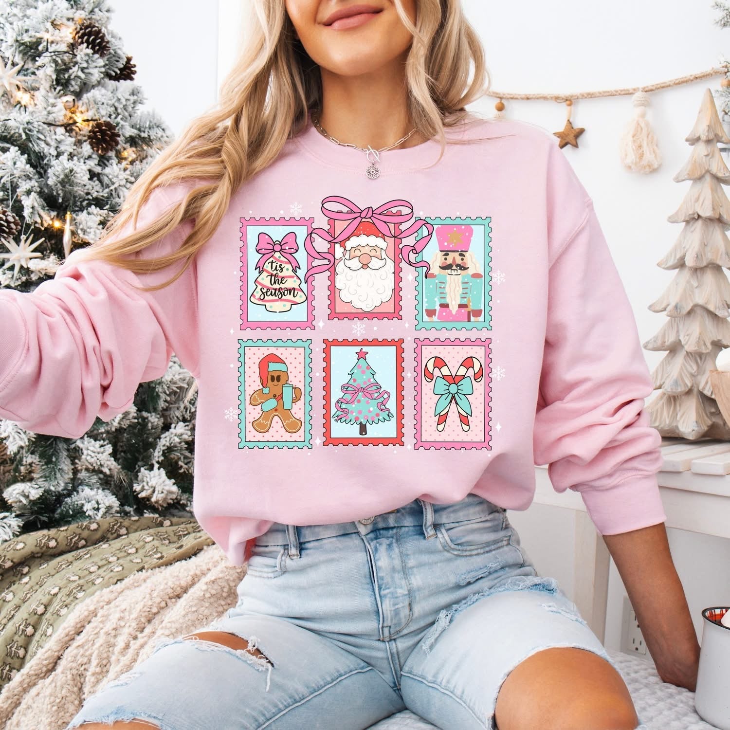 Christmas Stamps - Pink & Blue Glitter