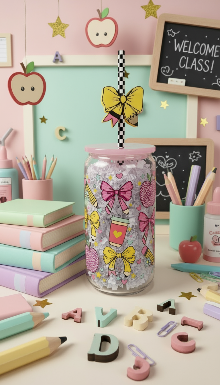 Cutesy Teacher Vibes Glass Can - 16oz.