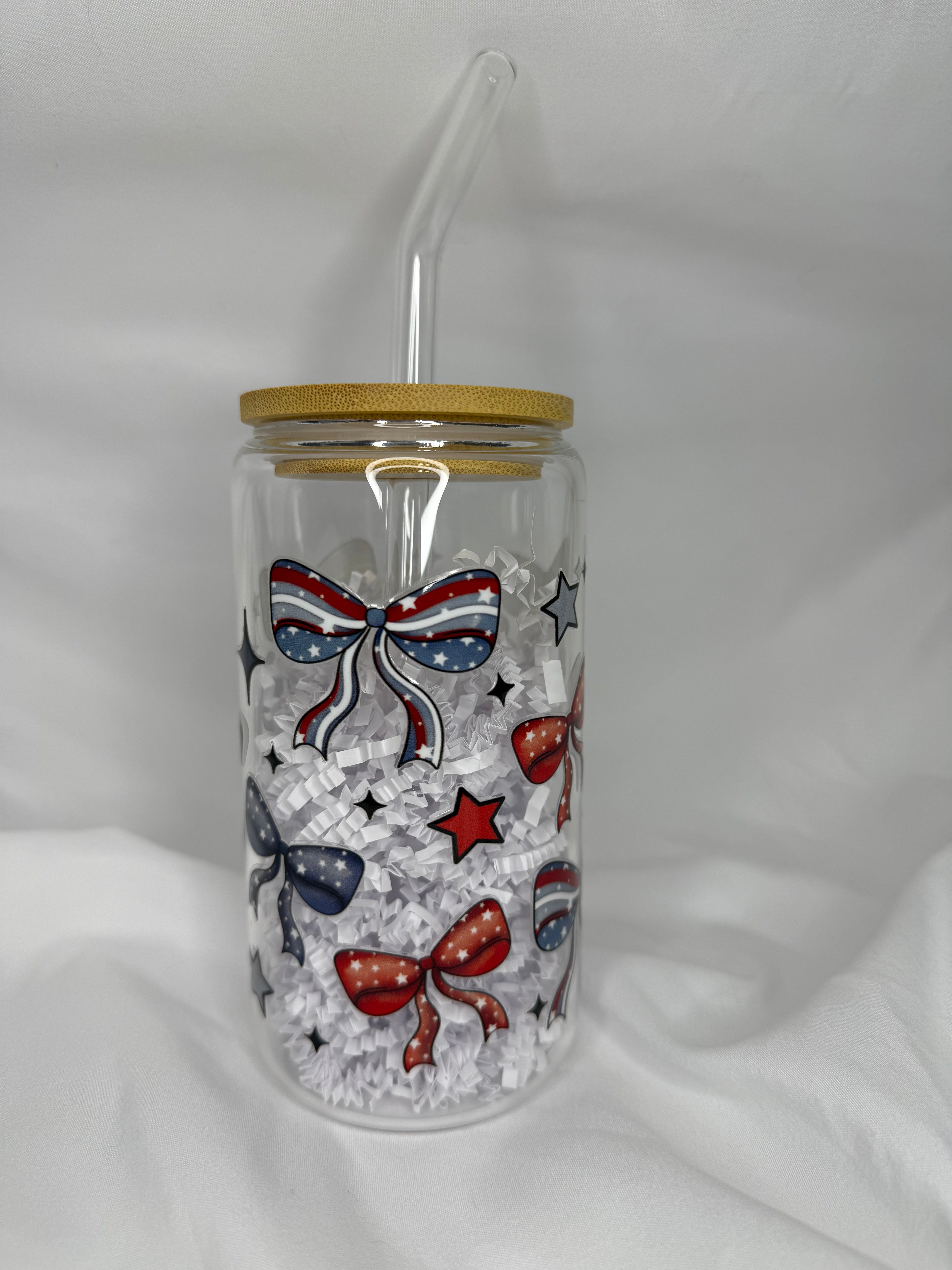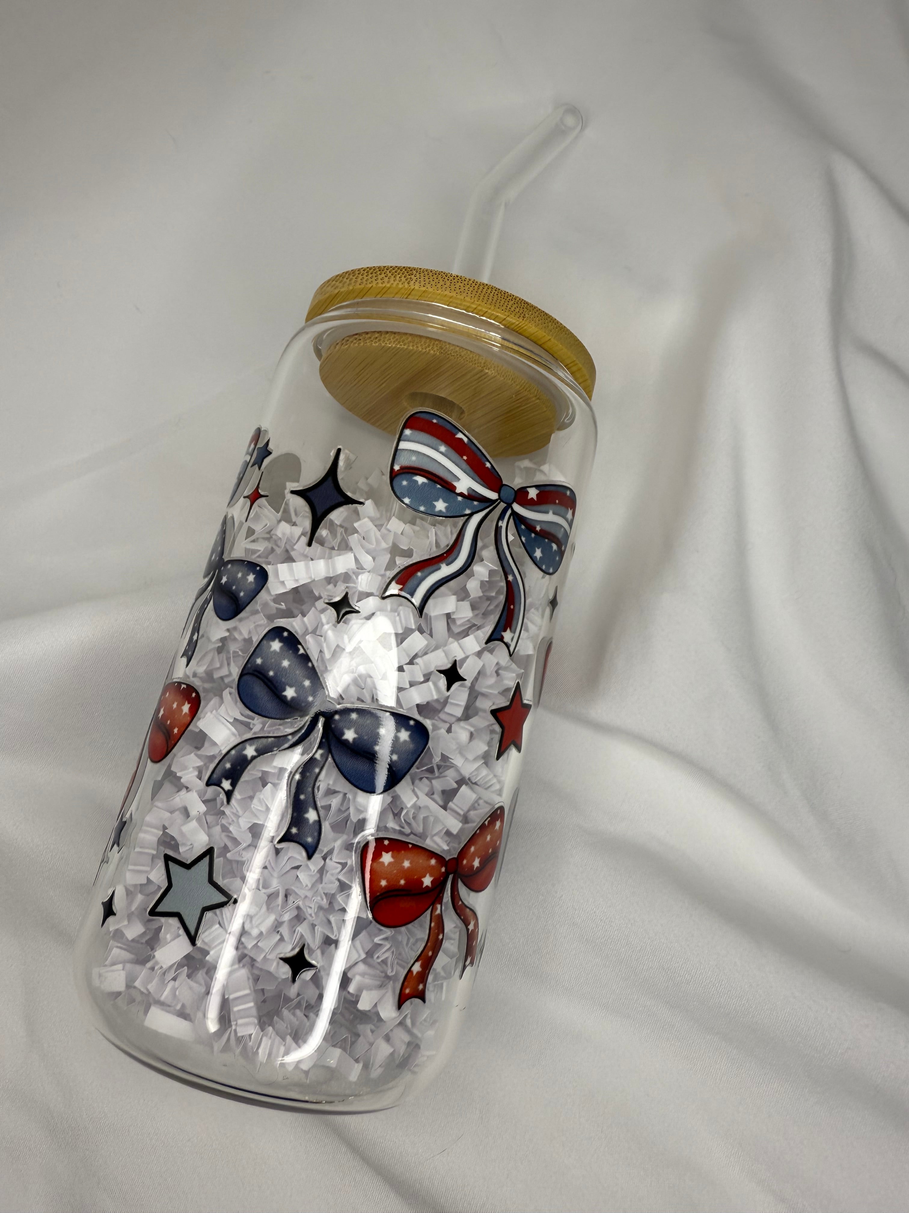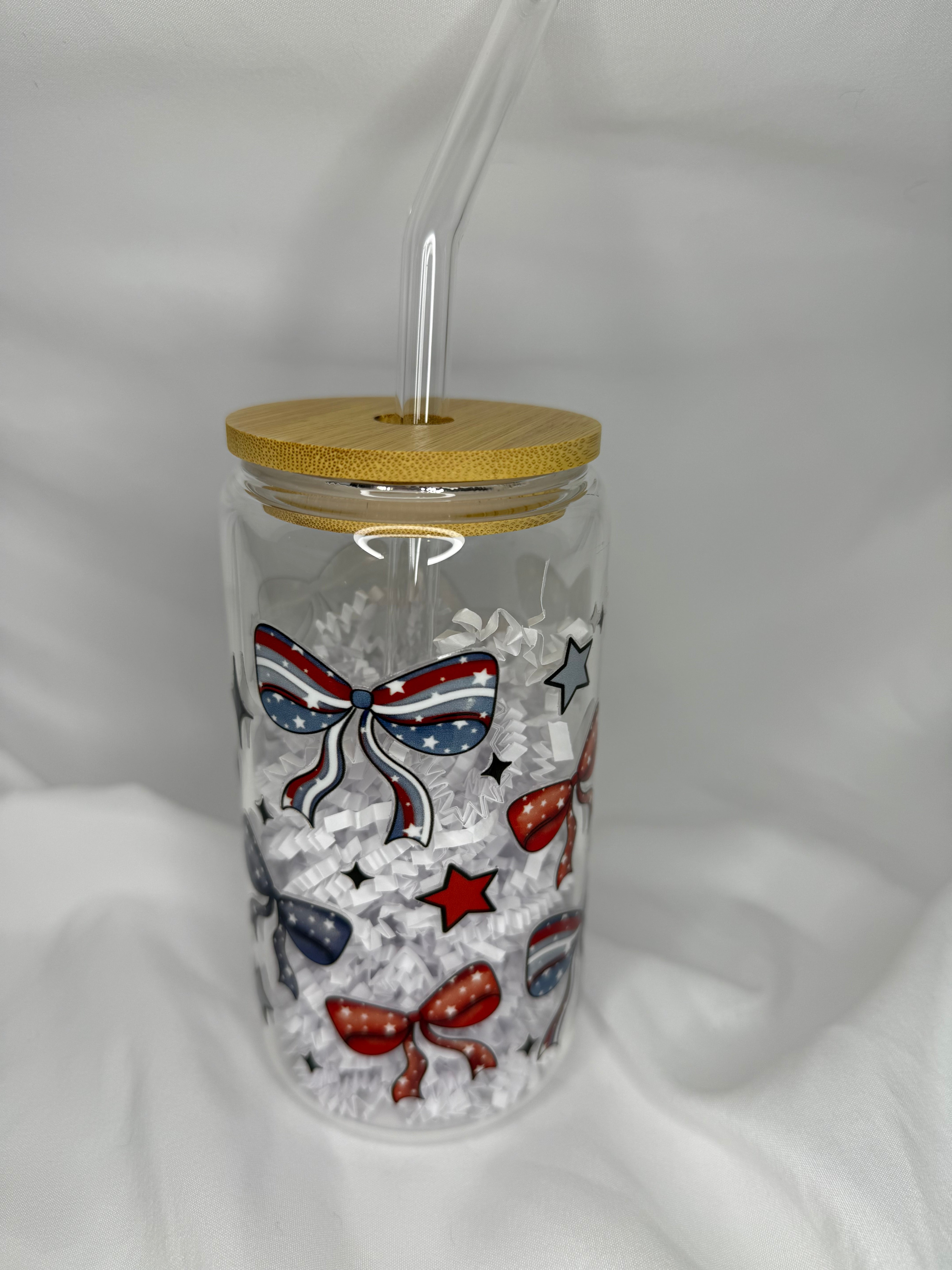 Patriotic Bows Glass Can - 16oz.