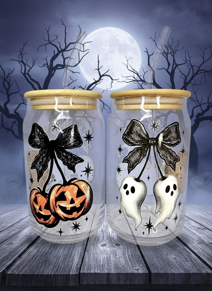 Spooky Cherry Ghosties and Jacks Glass Can - 16oz.