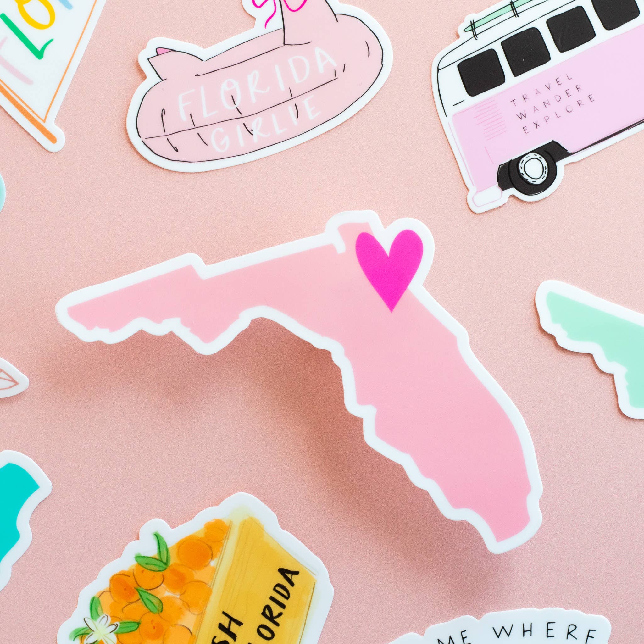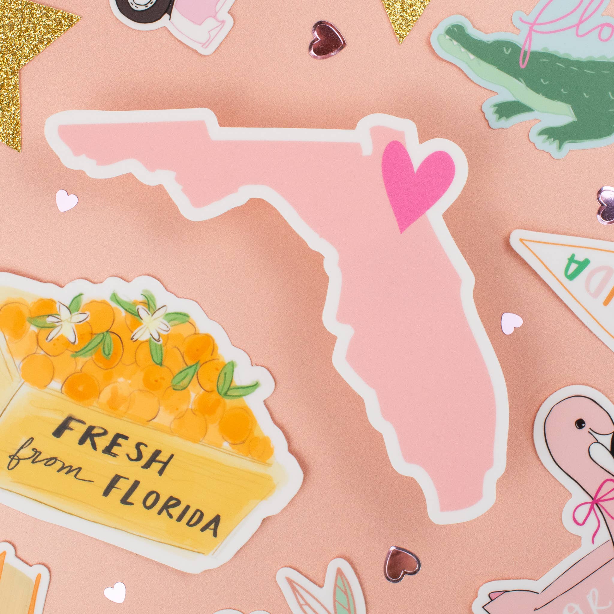 Take a little piece of Florida with you everywhere you go with our 'Florida Heart' sticker in pink! Perfect for adding a splash of Vitamin C to your phone case, laptop or water bottle.