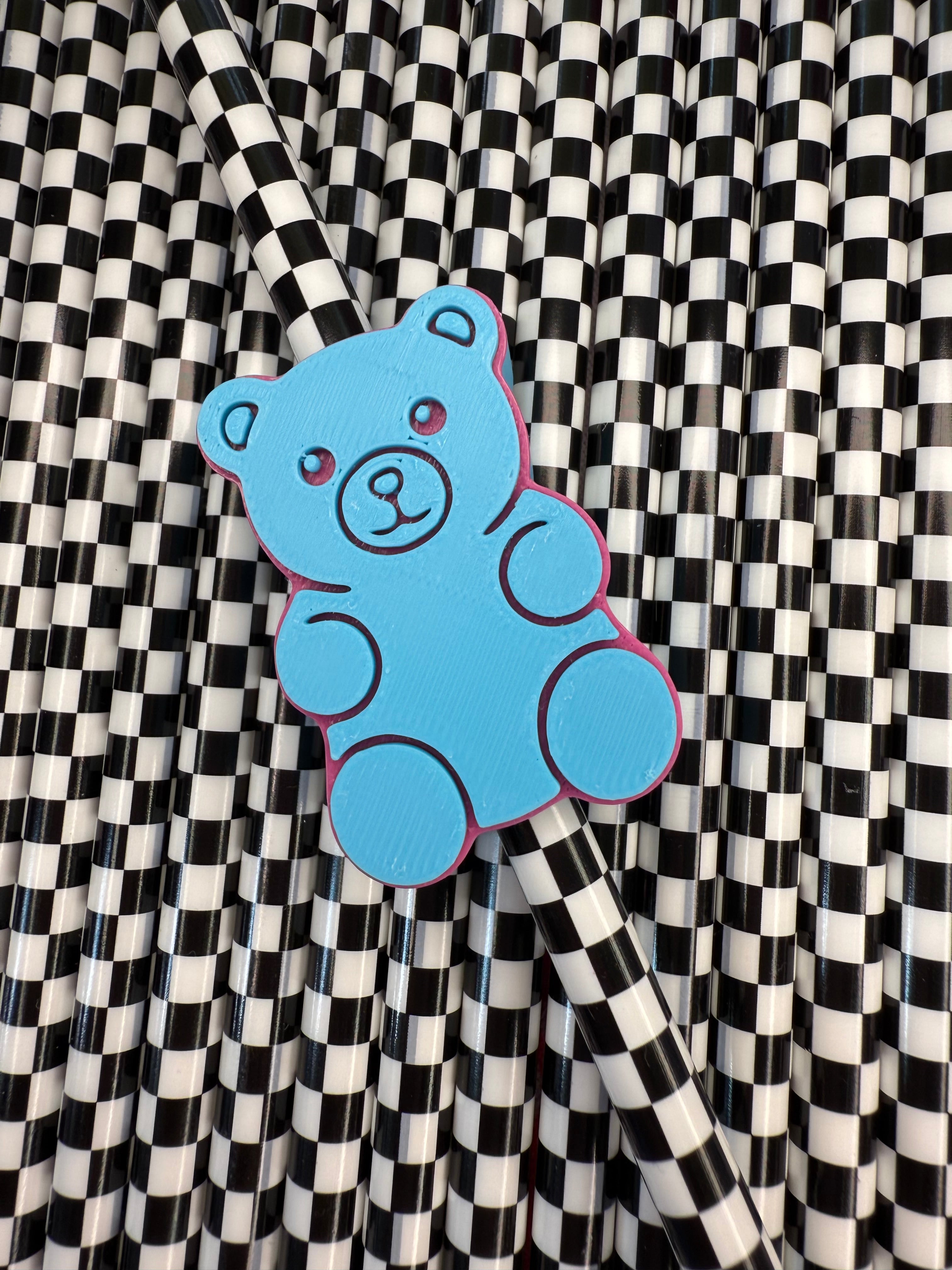 Blue w/ Pink Outline Gummy Bear Straw Topper