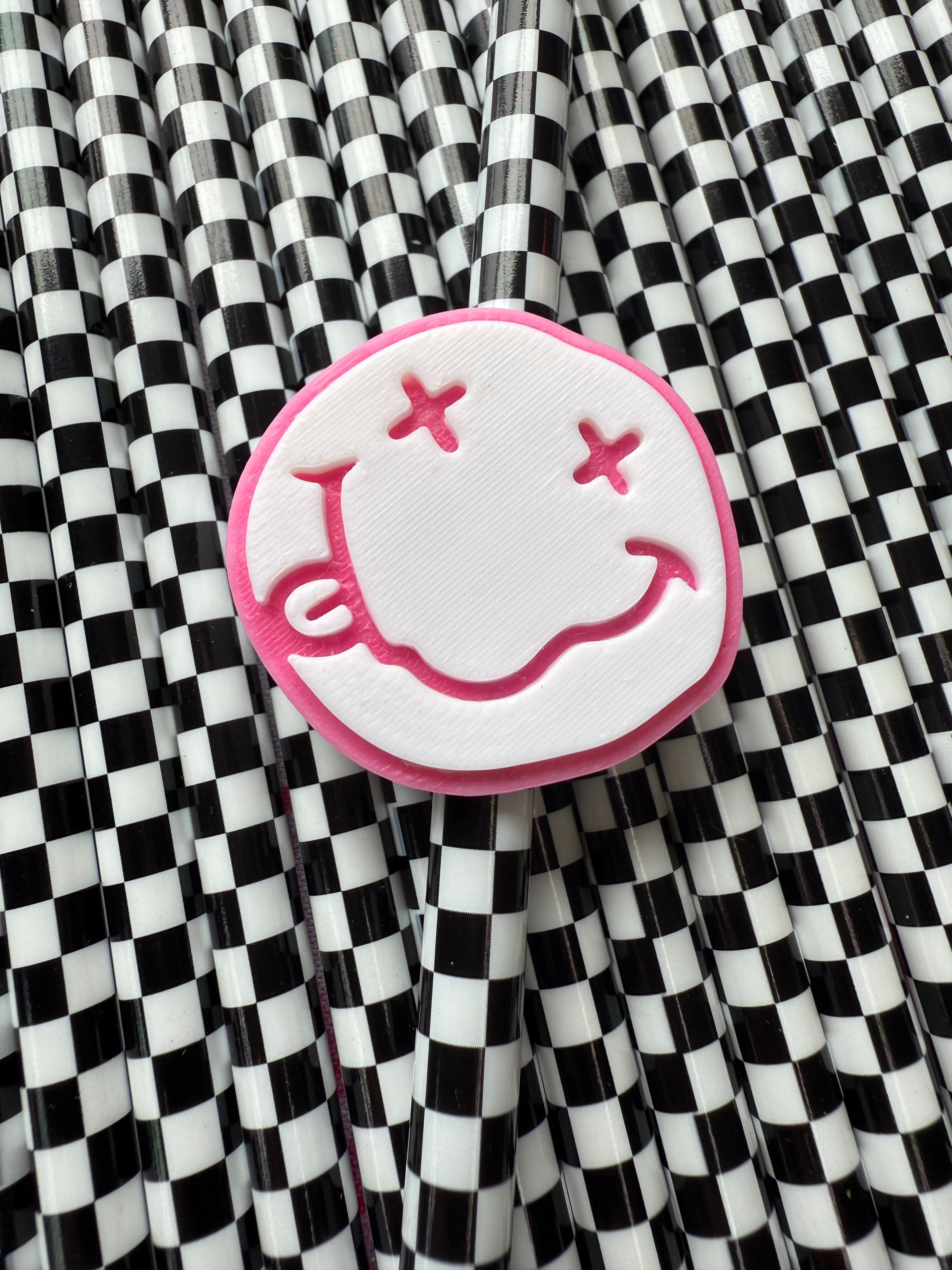 Pink & White Smiley Straw Topper