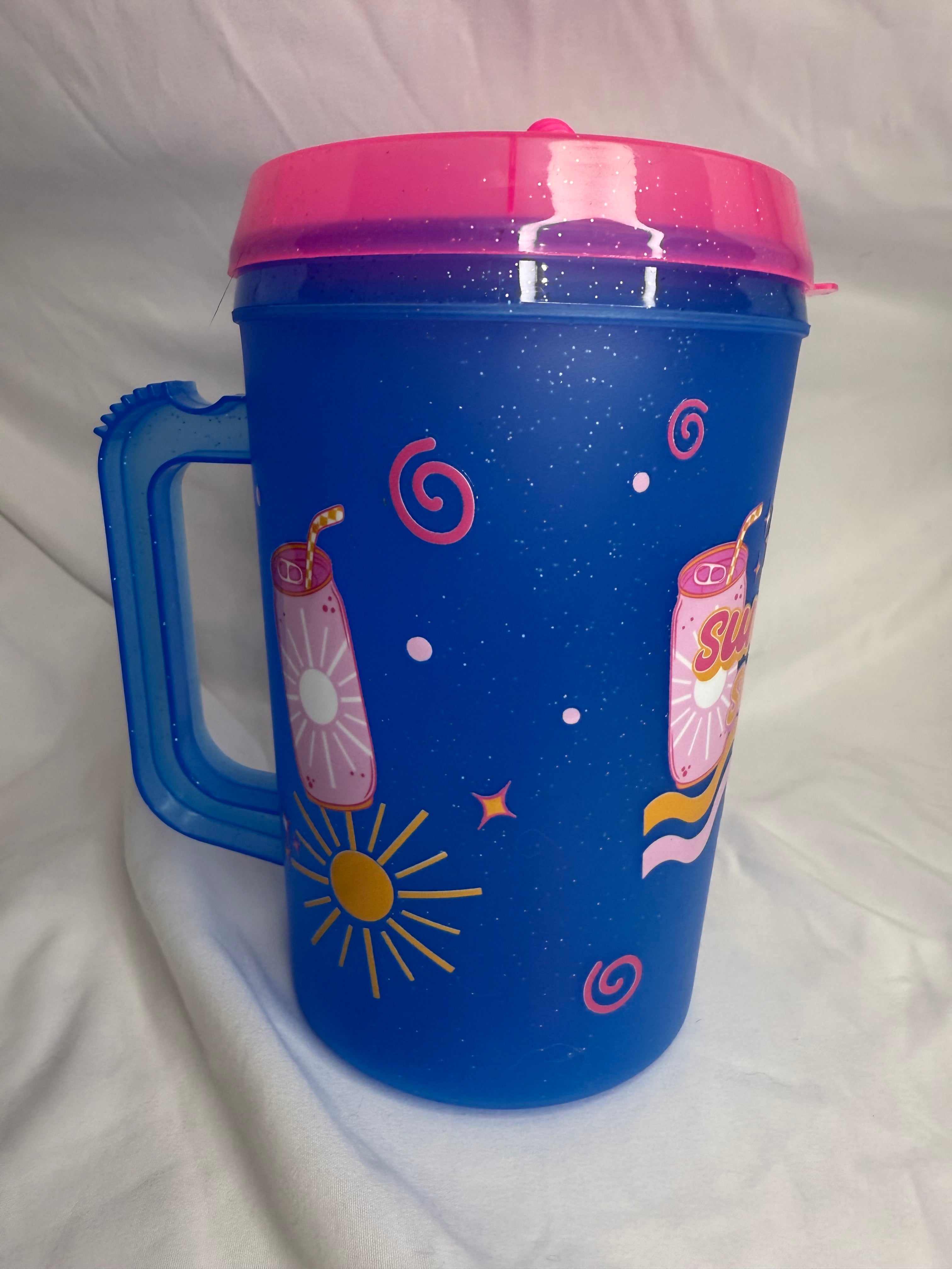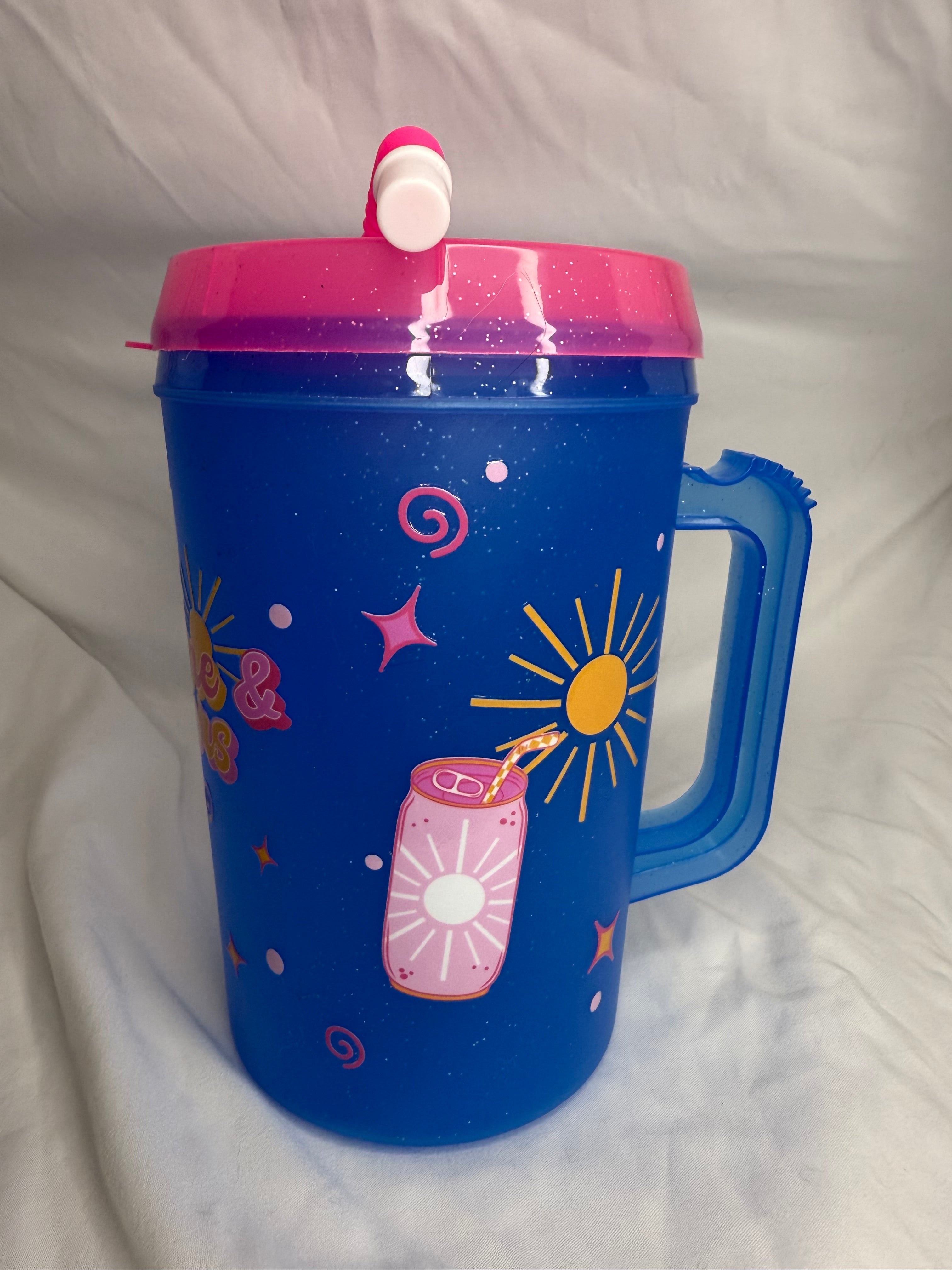 34oz. Glitter Guzzler Tumbler and bendy straw w/ handle.