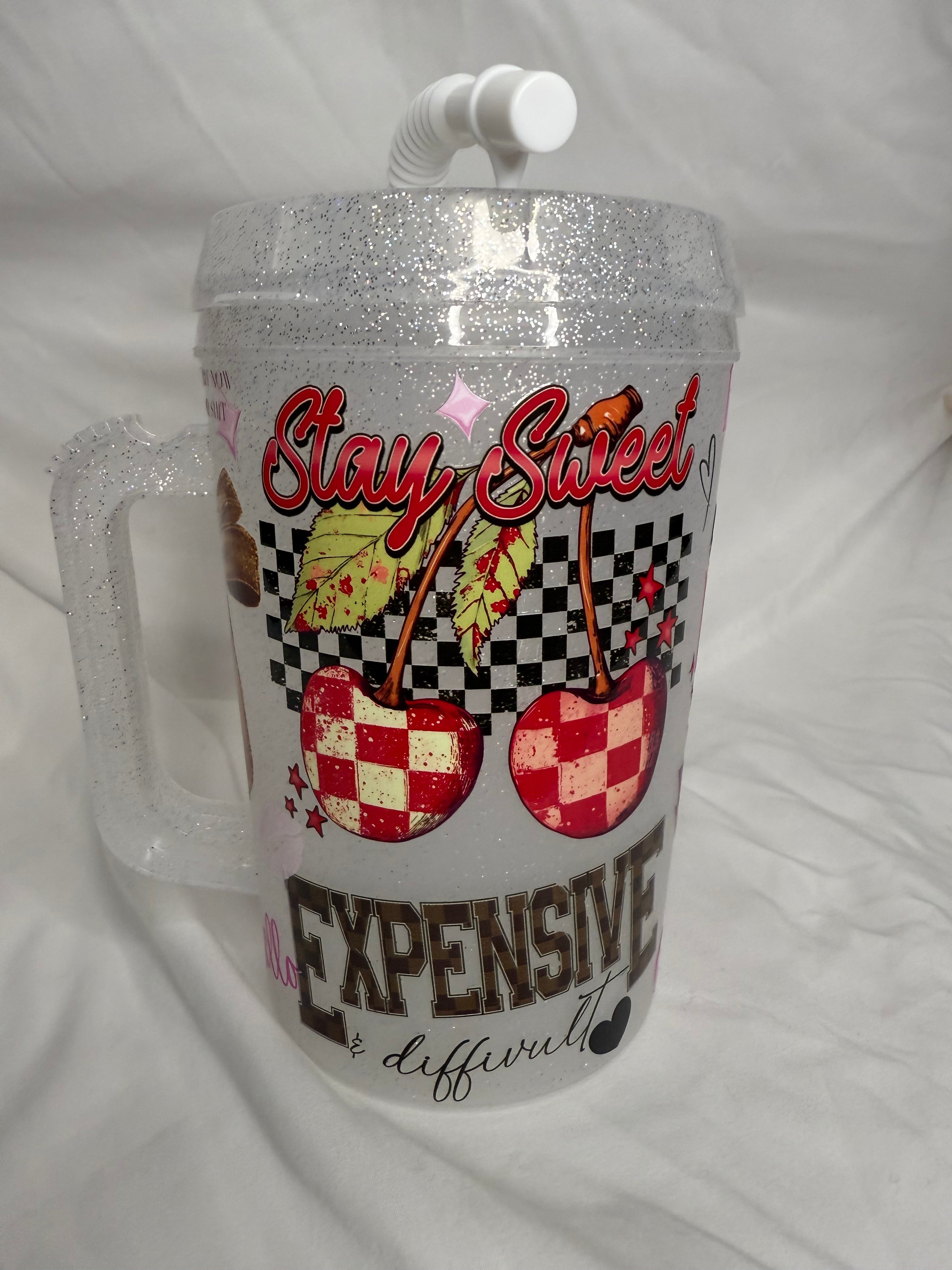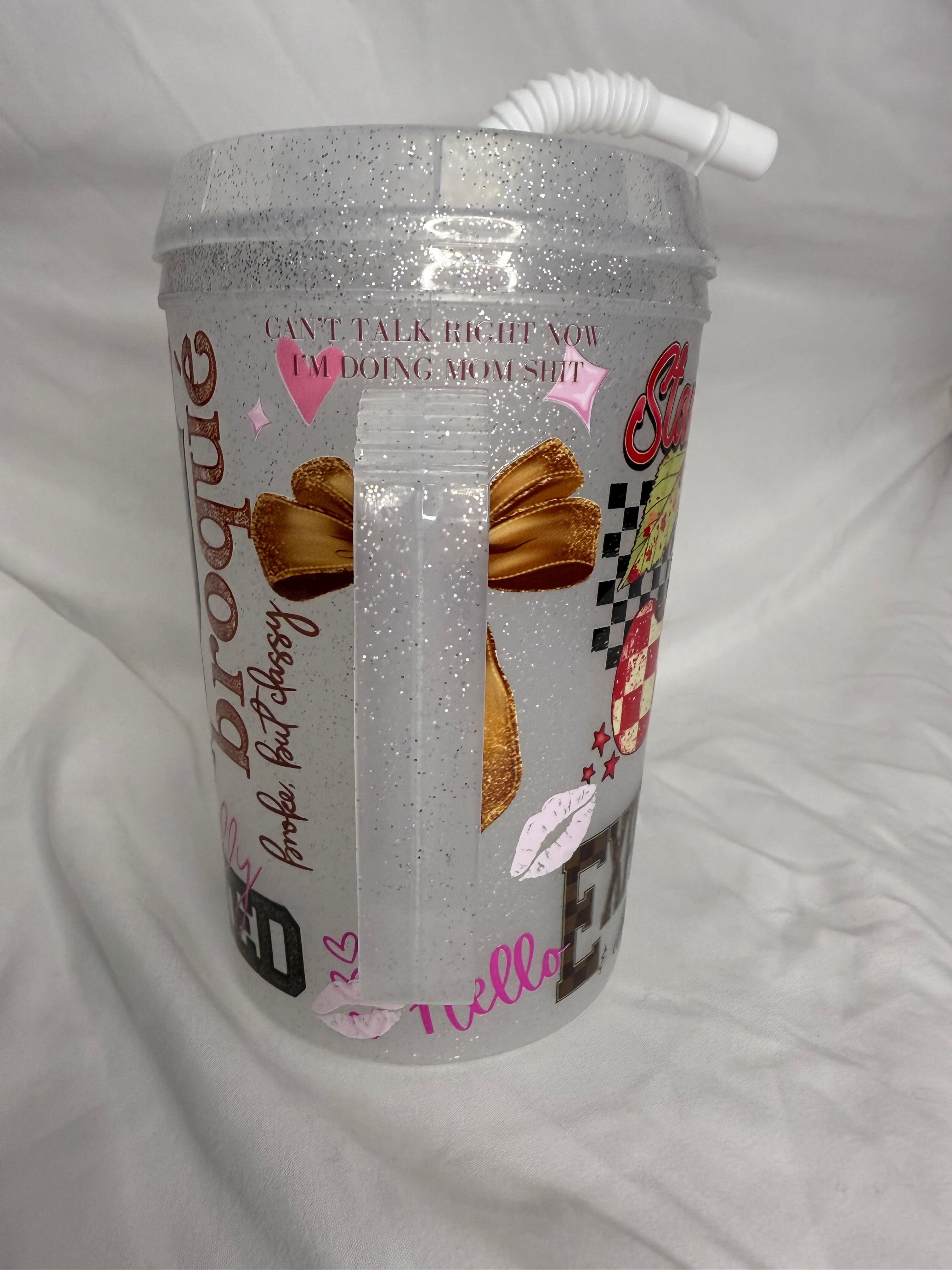 34oz. Glitter Guzzler Tumbler and bendy straw w/ handle.