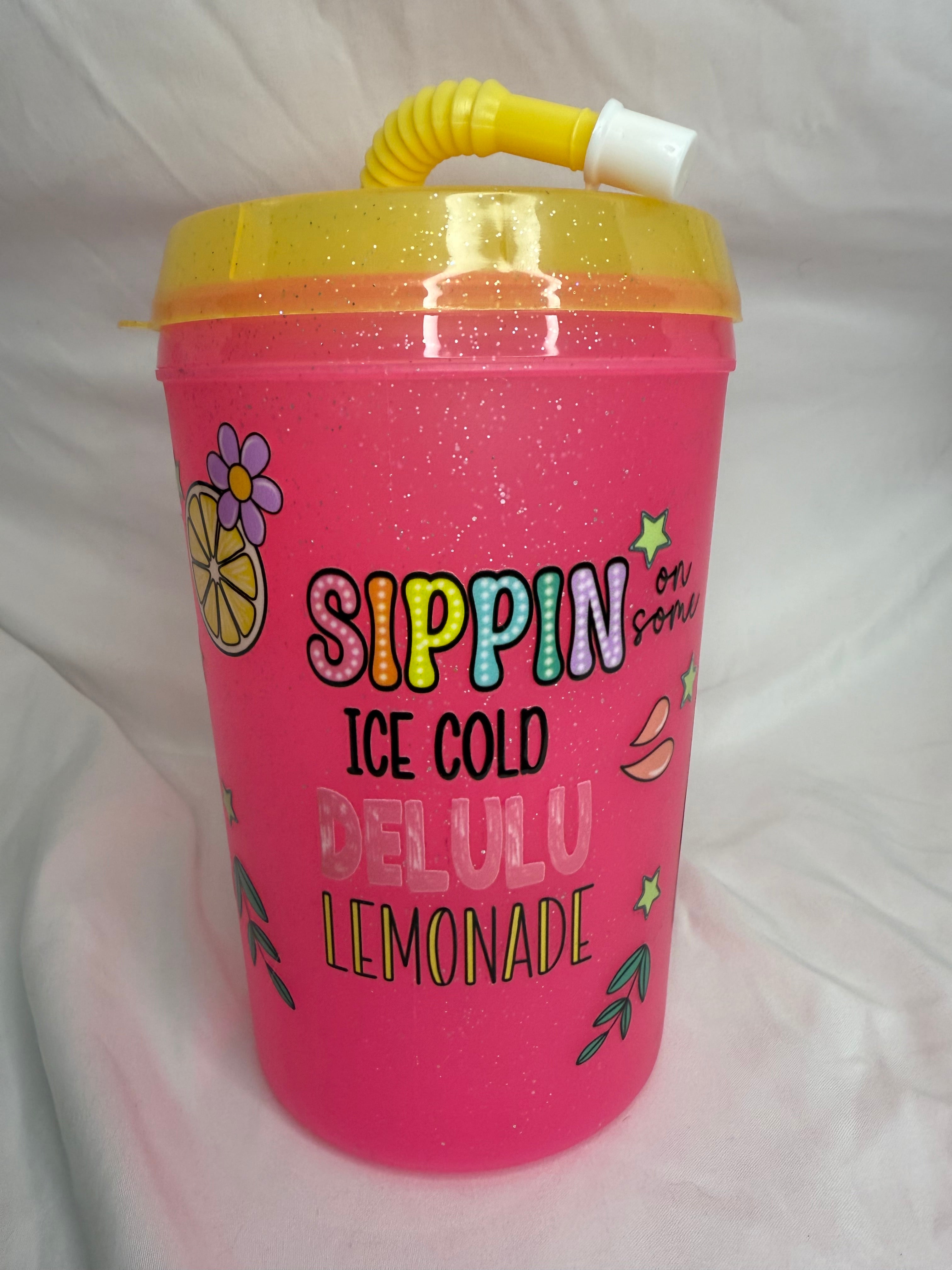 Sippin Delulu Lemonade Glitter Guzzler Tumbler - 34oz.