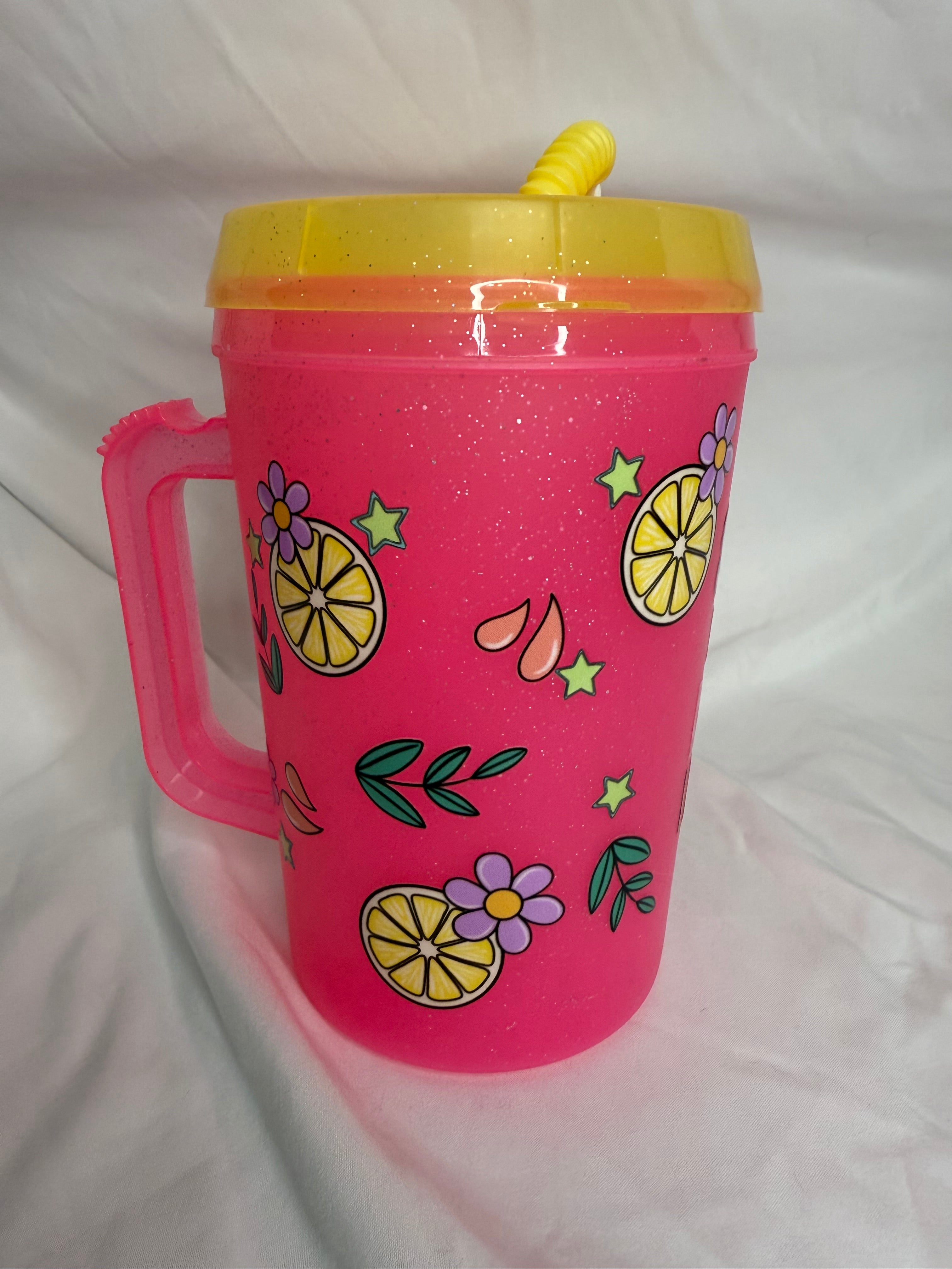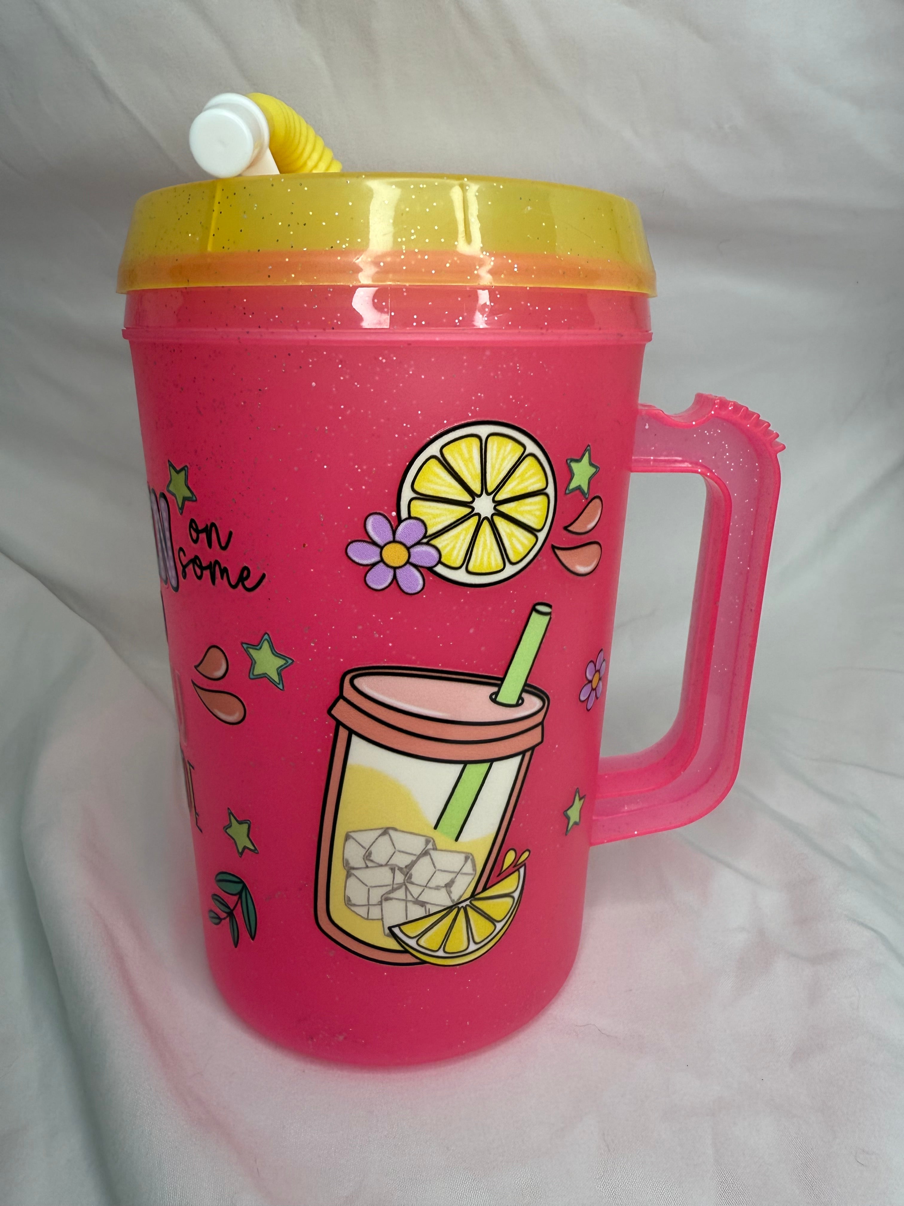 34oz. Glitter Guzzler Tumbler and bendy straw w/ handle.