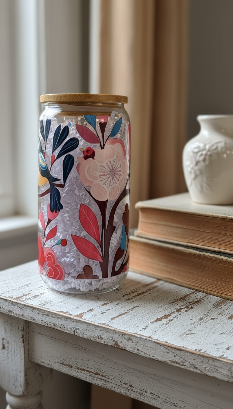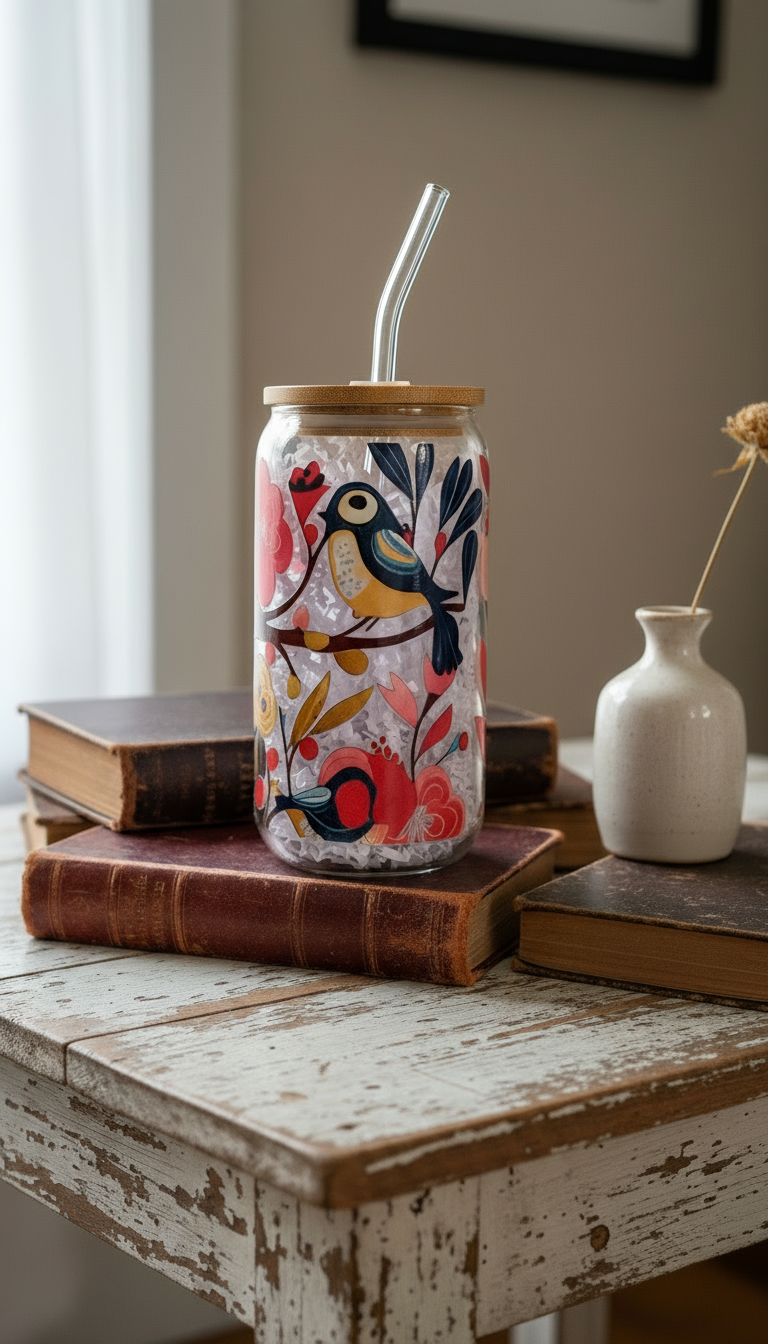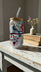 Birdie Floral Glass Can - 16oz.