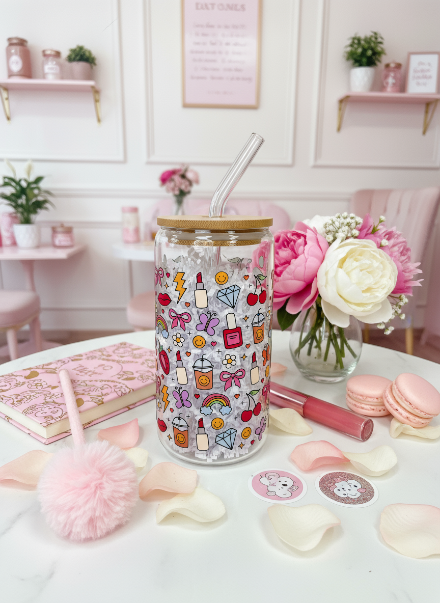 Girly Doodles Glass Can - 16oz.